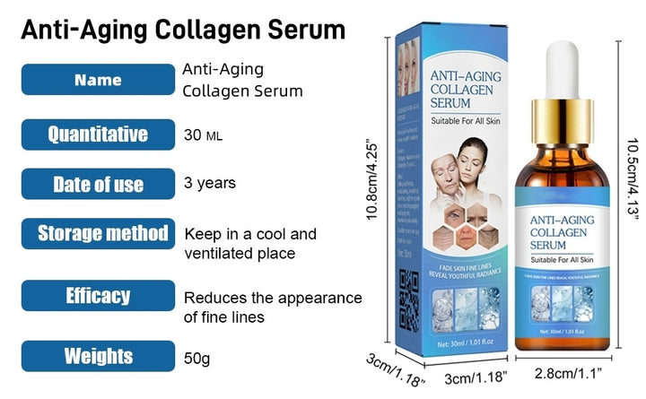 Reveal youthful, radiant skin with the Anti-Aging Collagen Serum (Original). This lightweight, dermatologist-tested formula is enriched with collagen and nourishing ingredients that help reduce fine lines, wrinkles, and dullness. Suitable for all skin types, it works to improve skin elasticity, boost hydration, and restore a smooth, glowing complexion with consistent daily use.